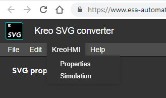The KreoHMI menù let the user define the interaction between the KSVG object and Kreo HMI and test the movement via the Simulation task.