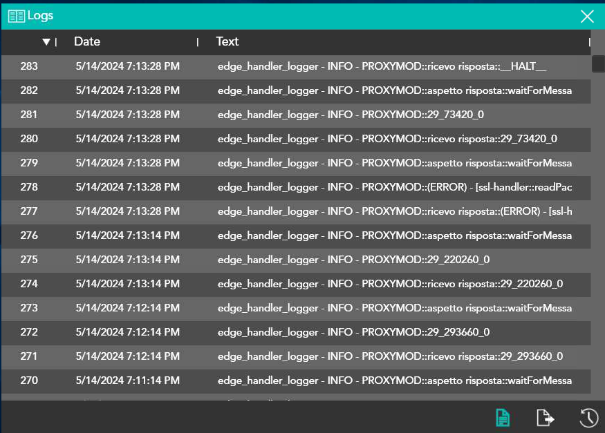 Via this button the user can load a specific log, display it and, if necessary, export to a TXT file in case it is necessary to move ahead with more detailed analisys.