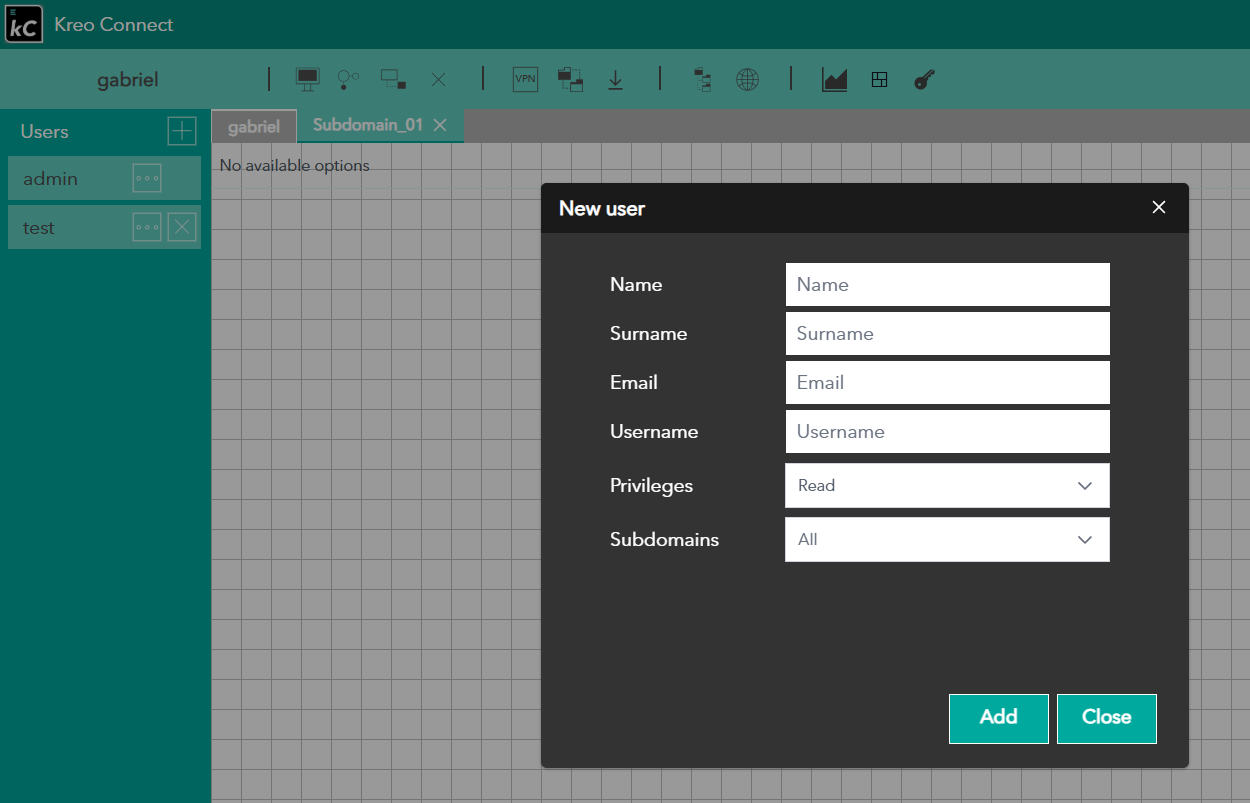 The user has the possibility of creating one or more subdomain where he can allocate the application of a specific customer or machine model.