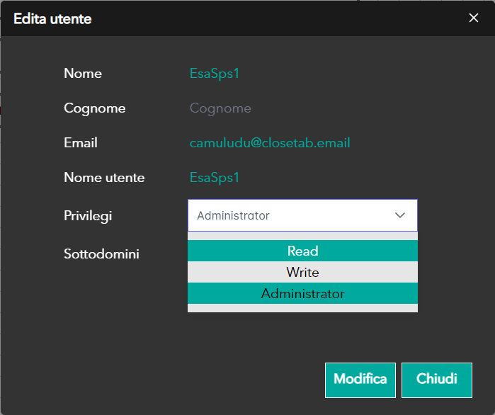 Qui sotto la descrizione delle tipologie di utenti con relativi privilegi: