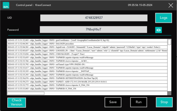 Logs: il pulsante Log visualizza o nasconde la finestra sottostante
