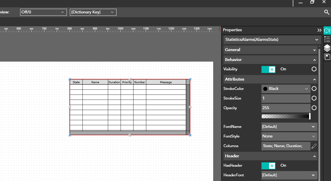 The complex object Alarm Statistics displays some accessory information of the alarm such as the duration and the number of times that an alarm has occurred.