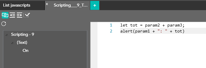Ad esempio nel caso in figura viene evidenziato come lo script venga lanciato dall'evento On della etichetta Text presente nella pagina Scripting-9