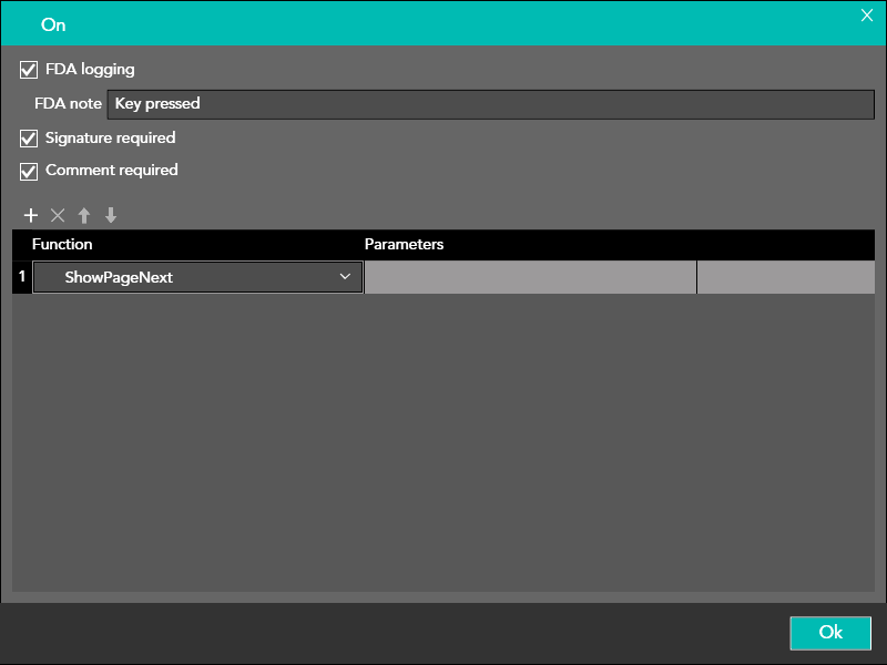 The function that must be performed when the event occurs is inserted in the lower part of the window.