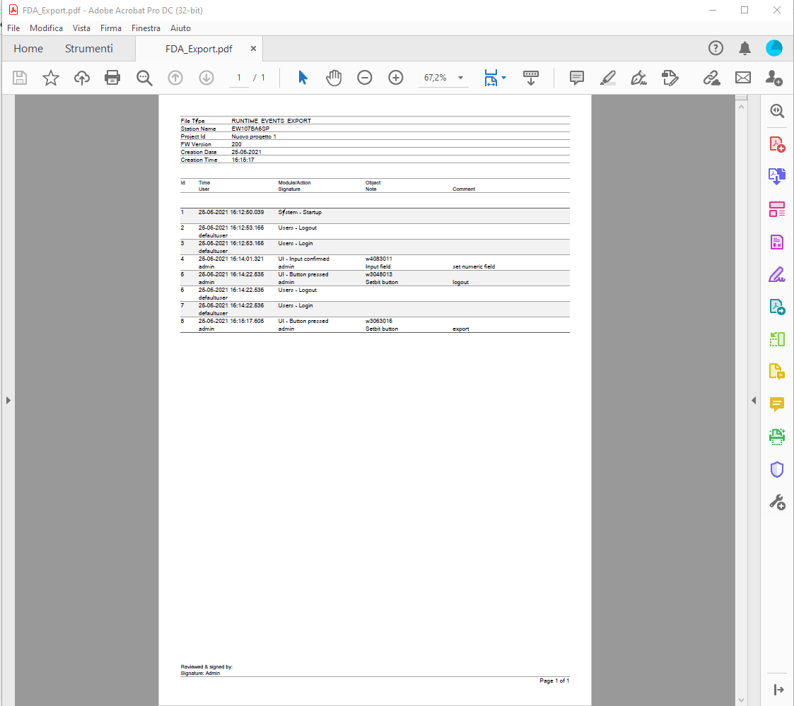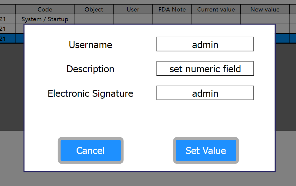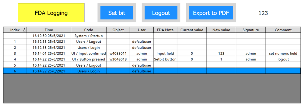 The electronic signature is not a login parameter but will be recorded in the event log buffer