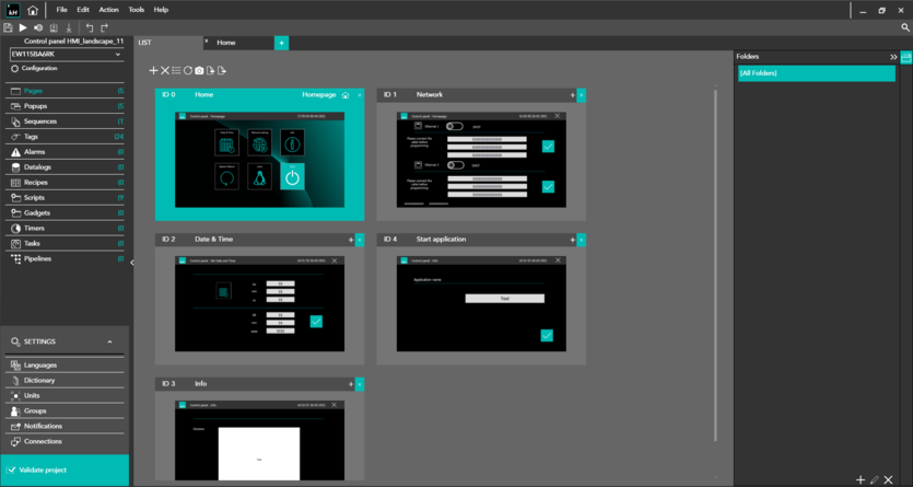 During the execution of the project, only one full screen page and up to 8 overlapping pop up pages will always be displayed.