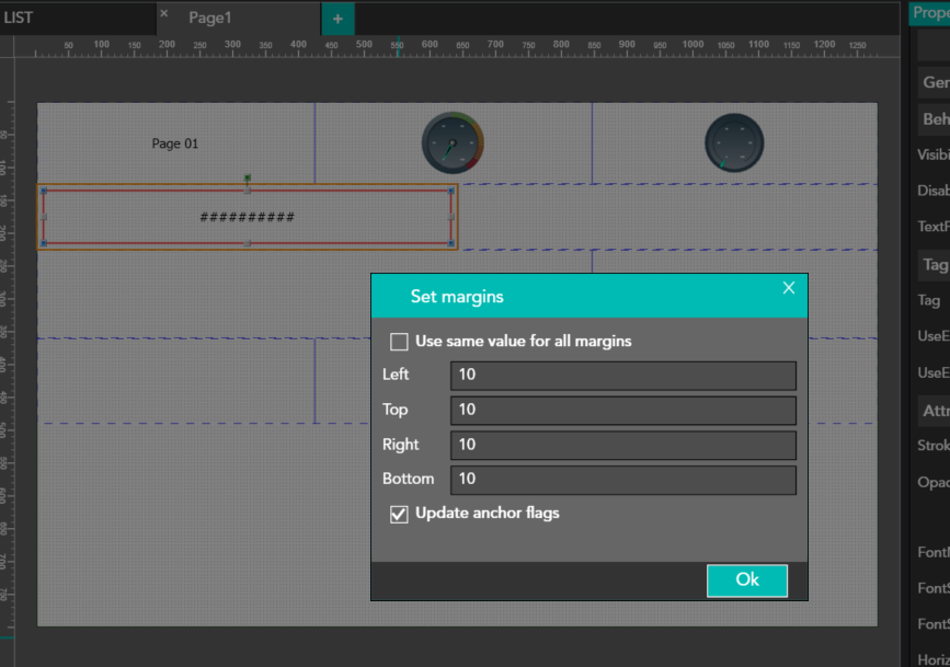 By the right click on each object the user can define the different margins in term of pixel quantity