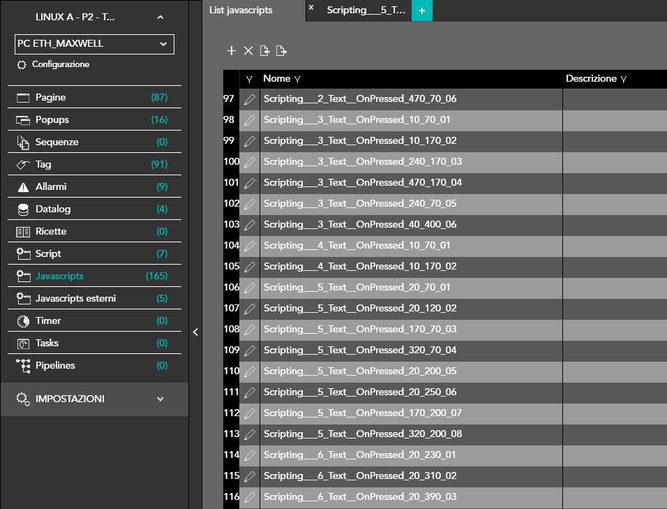 Once you have selected the Javascript tab in the project tree the complete list of the JS is displayed.
