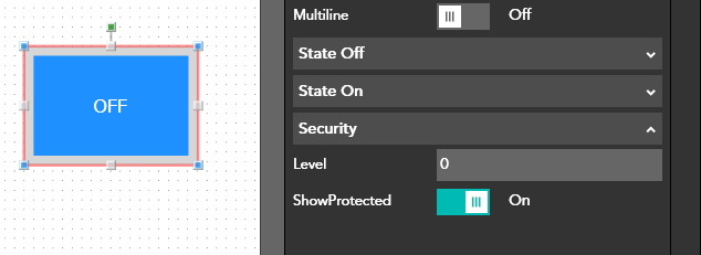 All objects have a Security section in the properties within which it is possible to define the security level of the object and a flag that allows you to define whether a symbol must be shown when the object is protected.
