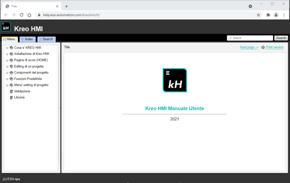 Opens the specific section of the ESA website dedicated to the KREO HMI help on line.