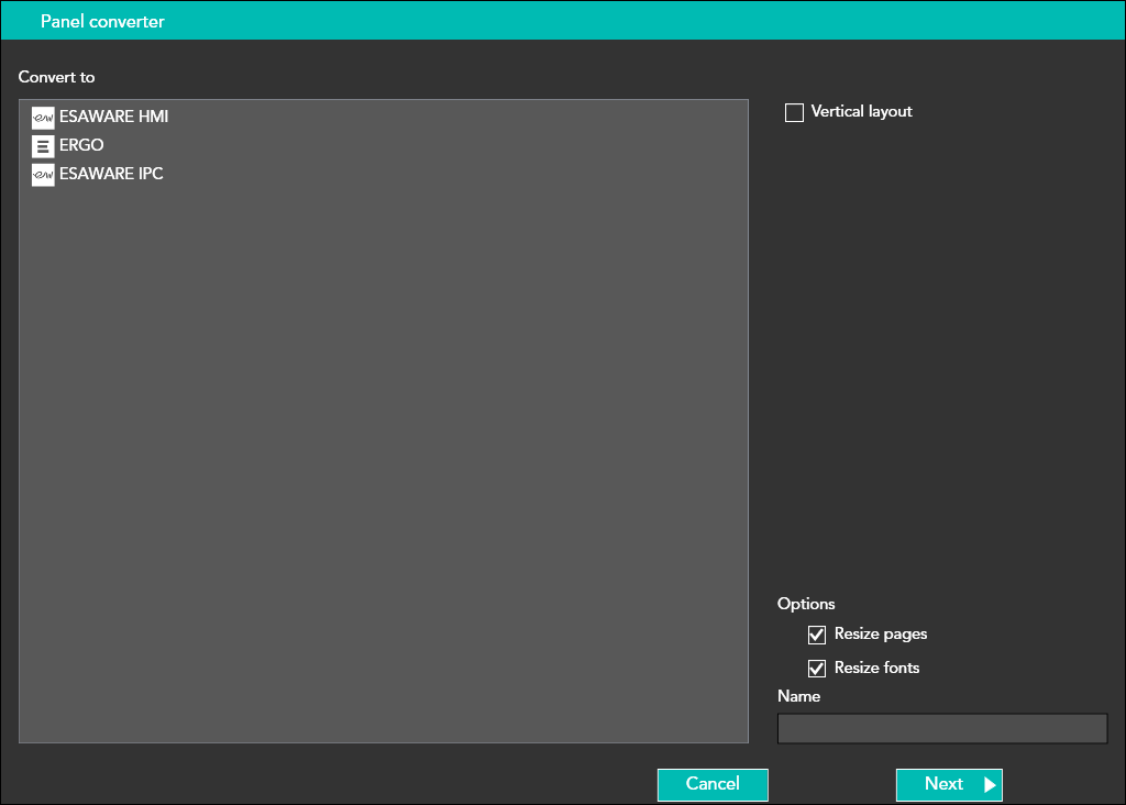 By clicking on the icon shown in the figure, the wizard for device conversion is launched.