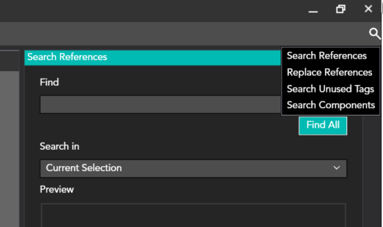 The project's cross reference utility is integrated into Kreo which allows you to carry out the following operations: