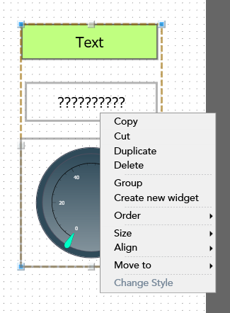 To create the project widget it is sufficient to make a multi-selection of all the objects that make up the widget, press the right mouse button and select Create new widget.
