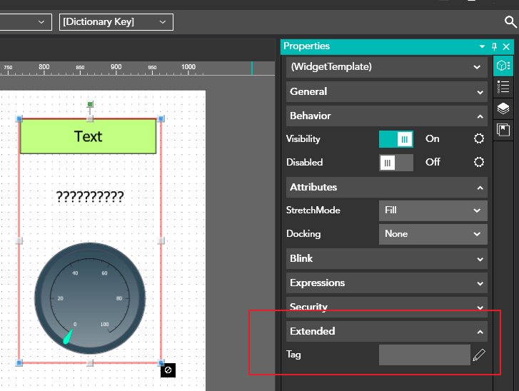 3- A new Extended section appears between the properties of the widget on the host page, which allows you to map the parameter property to the value of the tag to be passed to the instance of the widget itself
