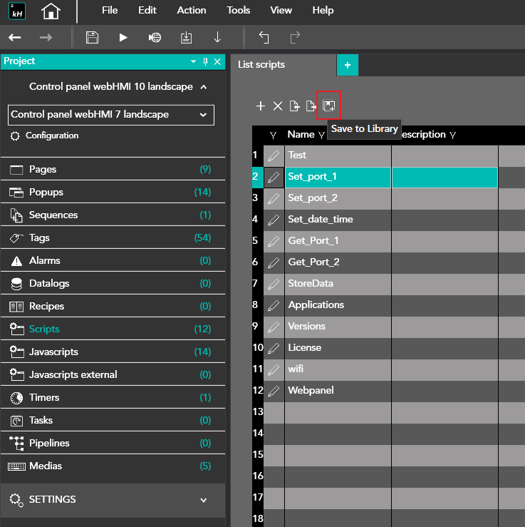 This Library will let the user save the script developed in KREO HMI.