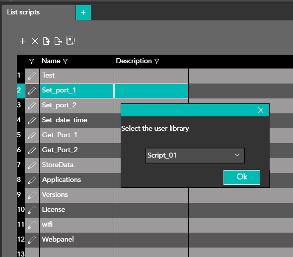 Simply drag & drop from the Script library to the script table