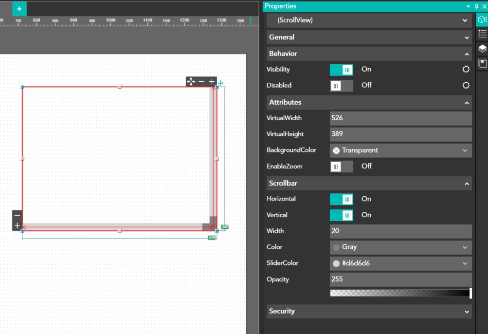 The ScrollView container allows the Kreo programmer to insert an object larger than the container.