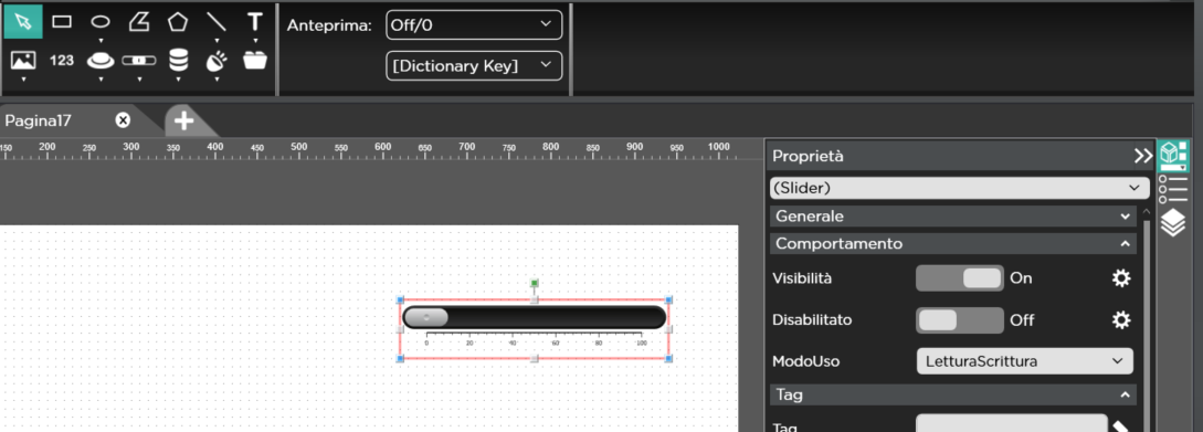 Through the properties the user can define the different states of the selector and the corresponding values of the associated Tag.