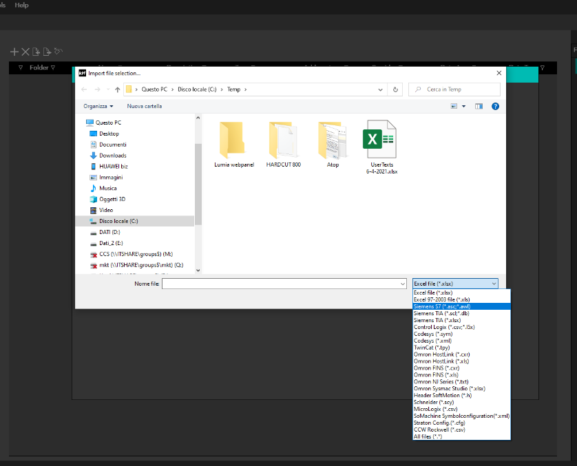 It allows you to import the symbolic tag file defined in the Siemens TIA Portal. Supported formats are SCL, DB, XLSX