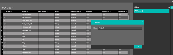 Using the green + button you can create new folders in which to insert the tags that refer to that particular module of the machine.