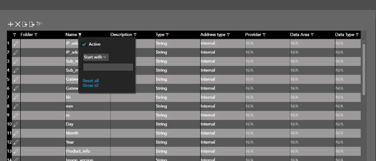 The database of the tags defined in the application is presented in tabular form and allows you to immediately view the main information divided into columns.