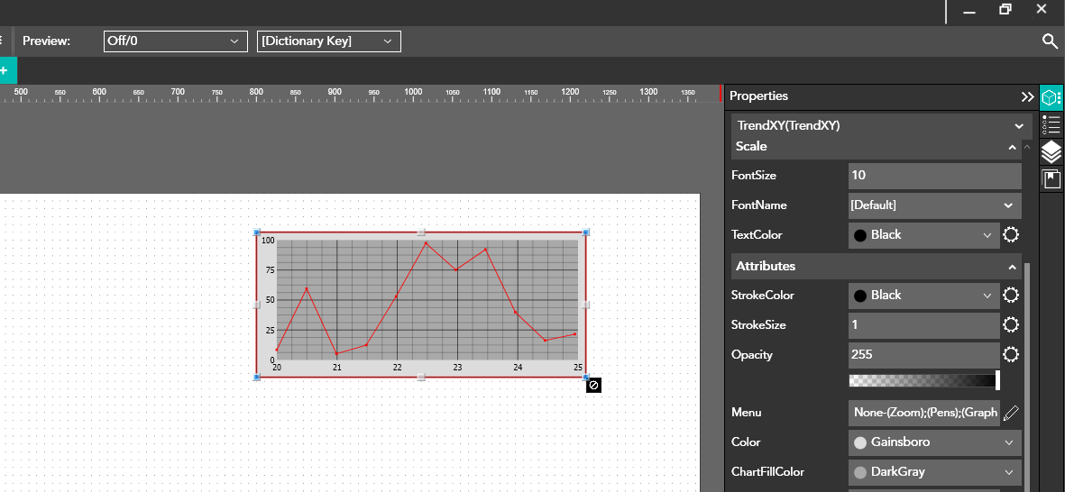 The TrendXY allows you to view graphs having both the X axis and the Y axis associated with a buffer of values.