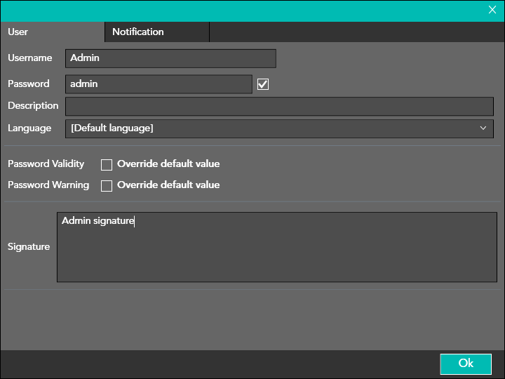 Password validity - overwrite the default value. This option is necessary in case the password validity of this user is not the standard one valid for all the users